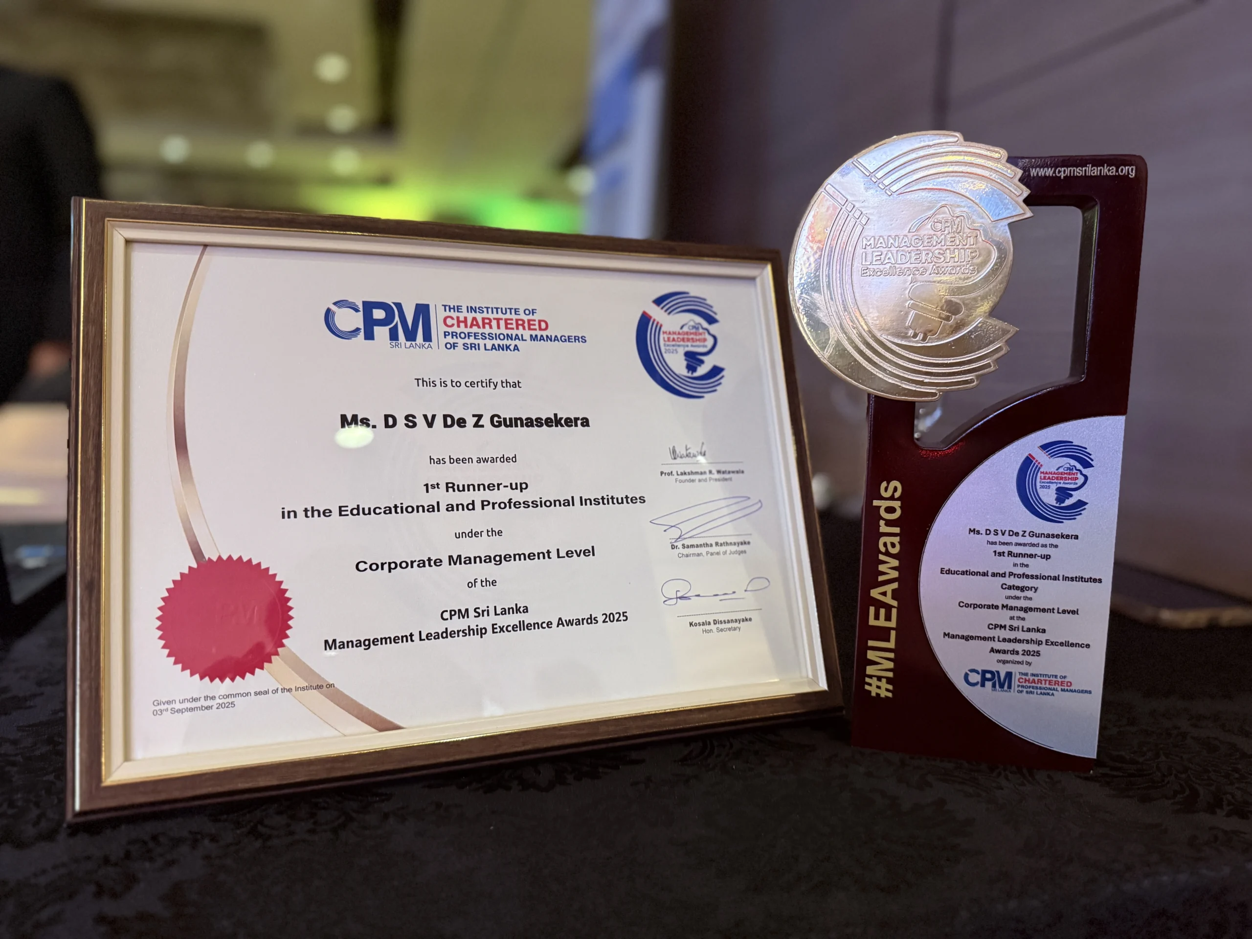 “1st Runner-Up in the Educational & Professional Institutes category under the Corporate Management Level”